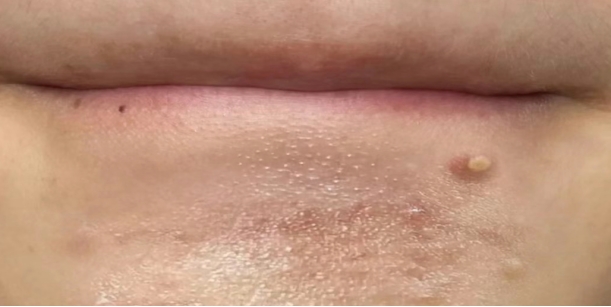 下巴部位的皮脂腺比较发达,油脂分泌旺盛,就会把毛囊“撑”起来,就把皮肤“撑”出了这些密集的小包包,像迷你痘痘。(有那么一两个,可能刮胡子的时候容易误伤)