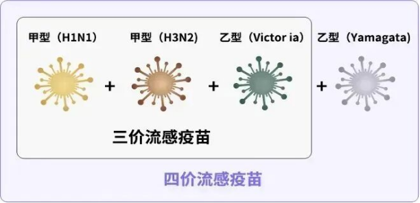 全球已上市的流感疫苗有灭活疫苗(包括裂解疫苗和亚单位疫苗)、减毒活疫苗和重组疫苗。根据疫苗所含组分,可分为三价和四价流感疫苗,与三价流感疫苗相比,四价流感疫苗毒株中增加了乙型流感的一个谱系。